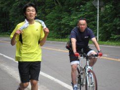7月22日、26回目を迎えるひまわりの会恒例の大沼湖畔を駈ける親子マラソンが行われました。 この日の大沼は、朝から時おり青空ののぞくお天気で、心配していた気温もそれほど高くなく ランナーにとっては、まずまずのスタートとなりました。 スタート、ゴールとなる森林公園の駐車場には40名を超える子供達と父母のみなさんが集まりました。 一周14km、半周5.8kmと長いながい距離に挑戦した選手の皆さん、苦しさを乗り越えて、お父さん、 お母さん、先生方の声援を受けながら力走し、心配した熱中症など事故もなく全員元気に完走しました 協力頂きました、サポートランナーの皆さん、記録、給水、車での走者の監察など、たくさんの父母 の皆様、そして、森林公園内での熊の出没で、昼食、表彰式をセミナーハウス大広間や美しい庭園を お借りすることが出来、本当に感謝でした。ありがとうございました。 |