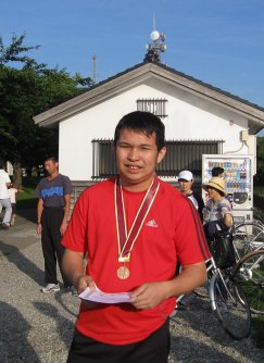 1周の部、今年もトップでゴールした若松 慎弥君、おめでとう!! |